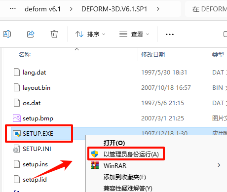 SETUP.EXE”Îļþ¼Ð£¬Êó±êÓÒ¼üÑ¡Ôñ“ÒÔ¹ÜÀíÔ±Éí·ÝÔËÐД
