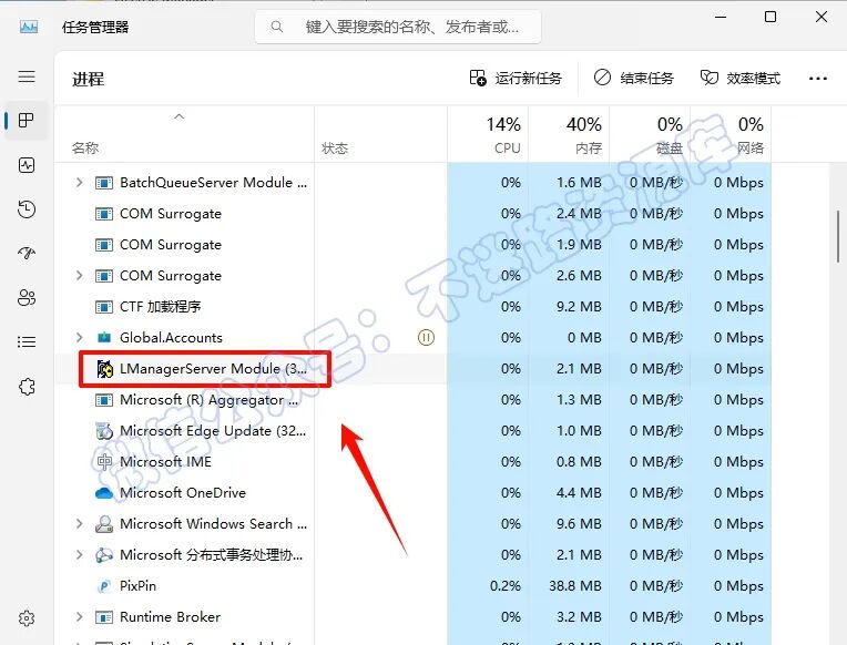 51.´ò¿ªÈÎÎñ¹ÜÀíÆ÷£¨Í¬Ê±°´×¡ESC+Shift+Ctrl£©,È·¶¨“LManagerServer Module ”·þÎñÕý³£ÔËÐУ¨ÈôûÓÐÔòÖØÆôµçÄÔÖØÐ°´ÉÏÒ»²½²Ù×÷£©