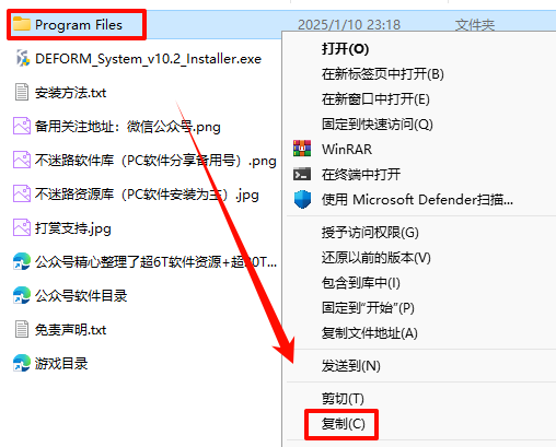 47.·µ»ØÖ®Ç°½âѹµÄ“DEFORM V10.2”Îļþ¼Ð£¬Ñ¡ÖДProgram Filesk“Îļþ¼Ð£¬Êó±êÓÒ¼üµã»÷“¸´ÖÆ”