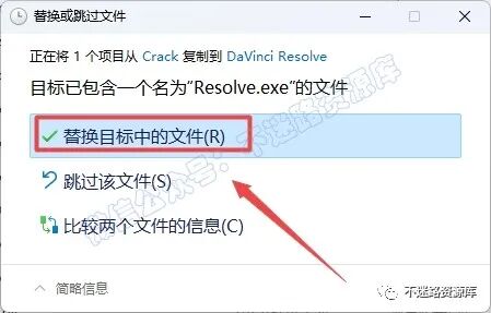 11.返回之前解压的“DaVinci Resolve 18.6”文件夹,双击打开“Crack”文件夹,选中“Resolve.exe”文件,鼠标右键点击“复制”