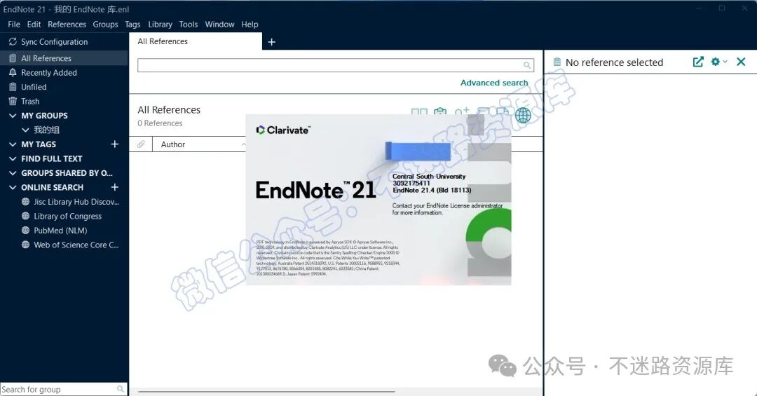温馨提示:软件其实已经安装了EndNote21.4最新版。这里是汉化文件版本低,所以会提示更新,不需要更新