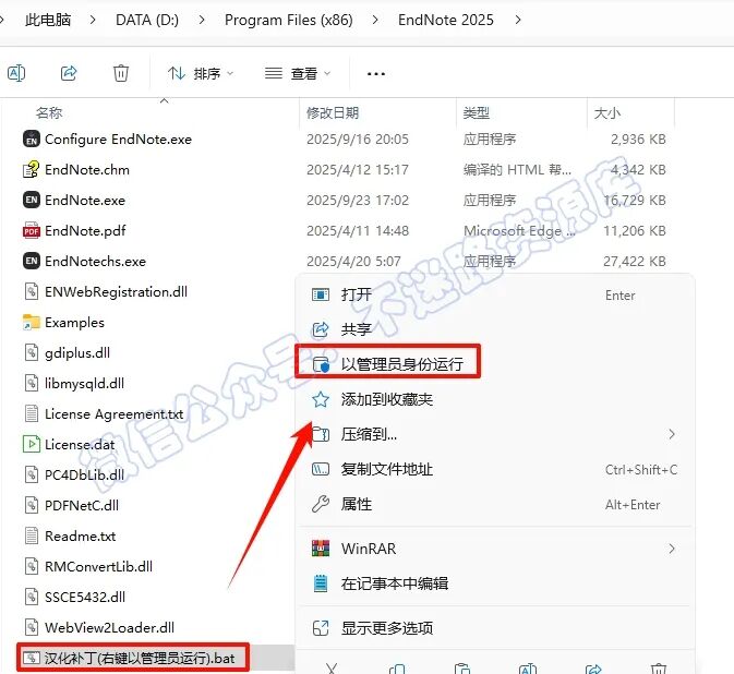 13.依次打开软件安装路径:D:\Program Files (x86)\EndNote 2025(参看第8步设置路径),在打开的文件夹空白处,鼠标右键“粘贴”刚才复制的文件