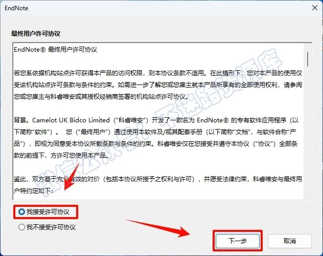 17.点选“我接受...”,点击“下一步”