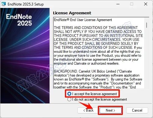 6.点选"I accept the license agreement",点击“Next”