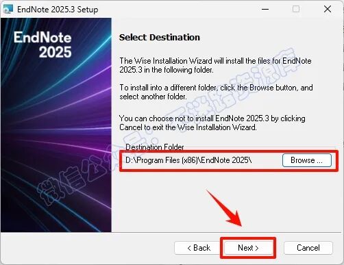 8.选择软件安装路径,建议和教程中的保持一致,本例安装到D盘(将路径地址中的首字符C改为D表示安装到D盘,安装路径不要出现中文),点击“Next”