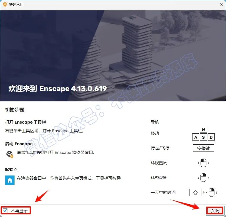 14.勾选“Enscape”选项就会出现Enscape工具栏,点击“关闭”