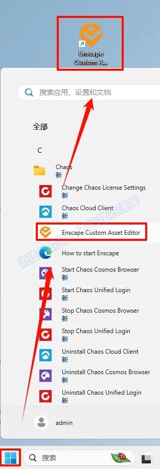 9.µã»÷“¿ªÊ¼“²Ëµ¥À¸£¬µã»÷“ËùÓÐÓ¦ÓÓ£¬ÕÒµ½“Enscape Custom Asset Editor“Èí¼þ£¬Êó±ê×ó¼üÍÏ×§µ½×ÀÃæÉϼ´¿É´´½¨×ÀÃæ¿ì½Ý·½Ê½