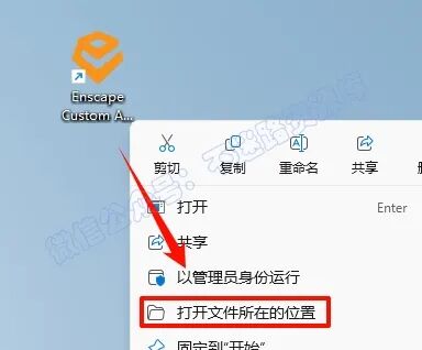 10.ÔÚ×ÀÃæÉÏÕÒµ½”Enscape Custom Asset Editor“Èí¼þͼ±ê£¬Êó±êÓÒ¼üµã»÷“´ò¿ªÎļþËùÔÚλÖÔ