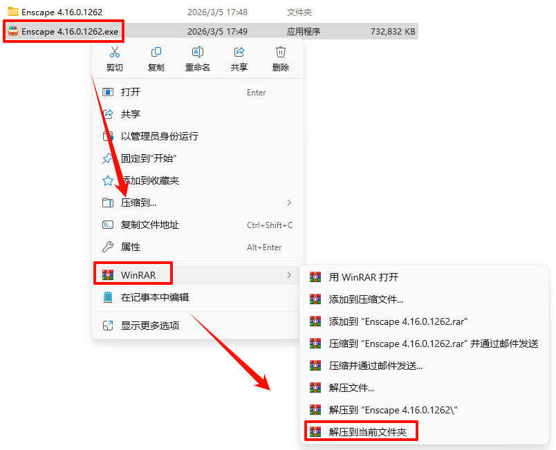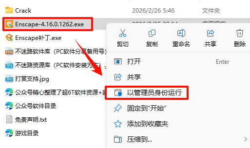 2.´ò¿ª¸Õ¸Õ½âѹµÄÎļþ¼Ð£¬Ñ¡ÖГEnscape-4.16.0.1262.exe”Îļþ£¬Êó±êÓÒ¼üÑ¡Ôñ“ÒÔ¹ÜÀíÔ±Éí·ÝÔËÐД