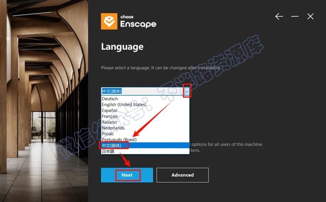 4.Ñ¡ÔñÓïÑÔ“ÖÐÎÄ£¨¼òÌ壩”£¬µã»÷“Next”