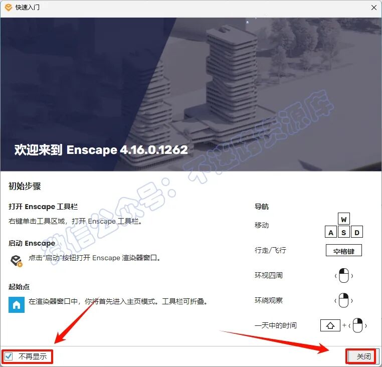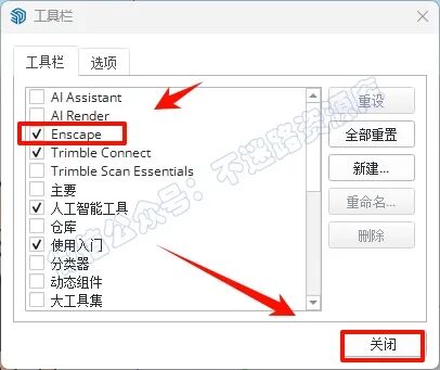 16.¹´Ñ¡“Enscape”Ñ¡Ïî¾Í»á³öÏÖEnscape¹¤¾ßÀ¸£¬µã»÷“¹Ø±Õ”