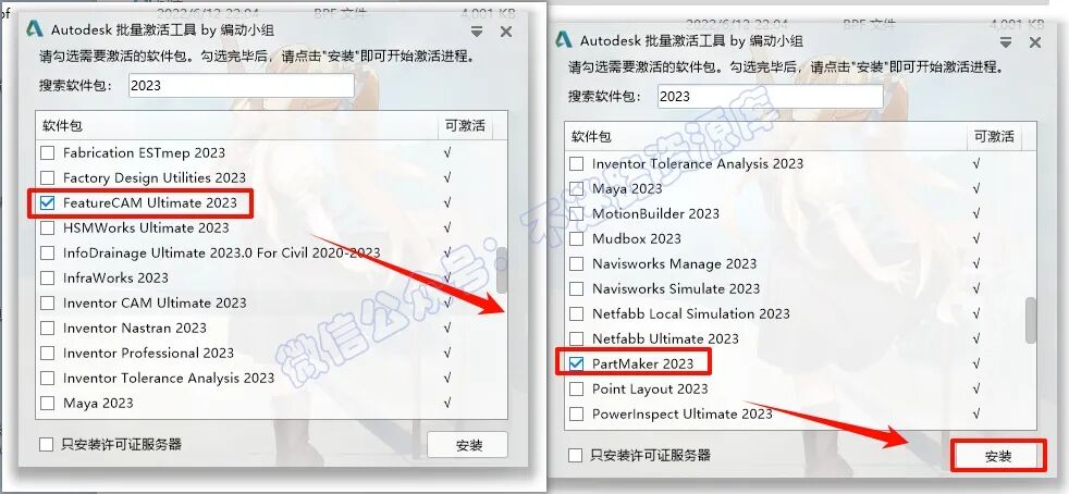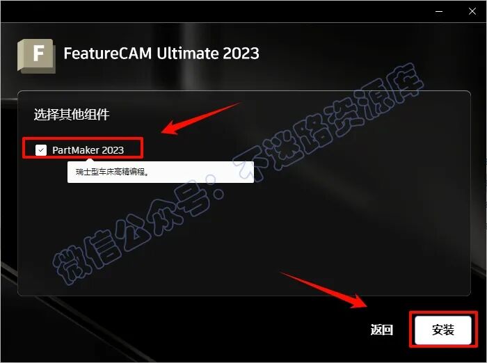 9.勾选“FeatureCAM Ultimate 2023“和“PartMaker 2023“,点击“安装”