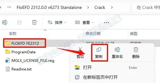 16.·µ»Ø“Crack”Îļþ¼Ð£¬Ñ¡ÖÐ ”FLOEFD FE2312“Îļþ¼Ð£¬Êó±êÓÒ¼üµã»÷“¸´ÖÆ”