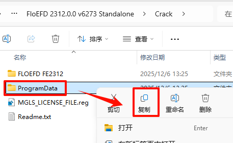 14.·µ»ØÖ®Ç°½âѹµÄ“FloEFD 2312.0.0 v6273 Standalone”Îļþ¼Ð£¬Ë«»÷´ò¿ª“Crack”Îļþ¼Ð£¬Ñ¡ÖГProgramData”Îļþ¼Ð£¬Êó±êÓÒ¼üÑ¡Ôñ“¸´ÖÆ”