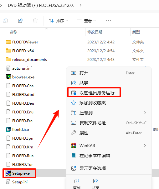 3.Êó±êÓÒ¼üµã»÷“Setup.exe”Ñ¡Ôñ“ÒÔ¹ÜÀíÔ±Éí·ÝÔËÐД