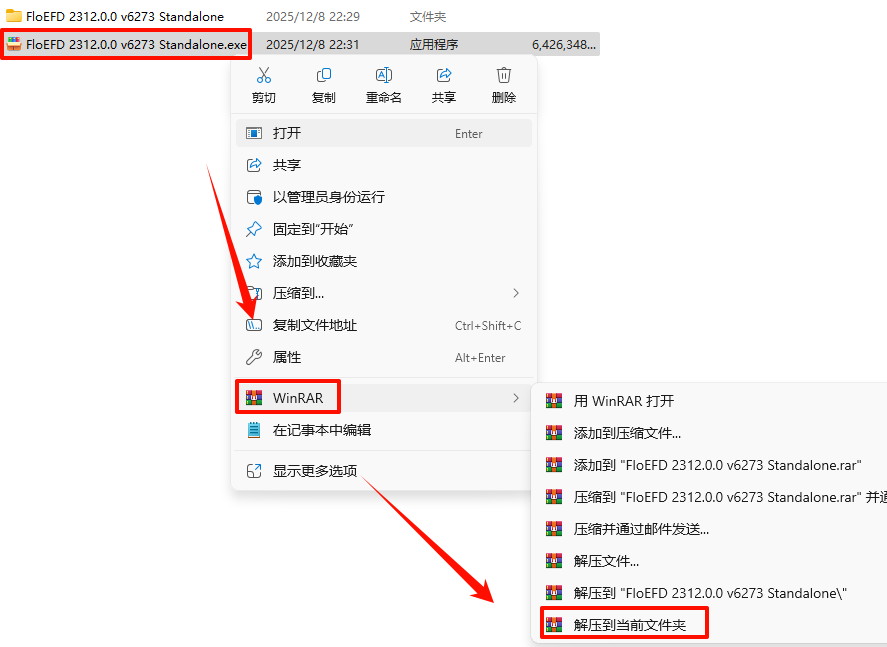 1.Ñ¡ÖÐÏÂÔØµÄѹËõ°ü£¬È»ºóÊó±êÓÒ¼üÑ¡Ôñ“½âѹµ½µ±Ç°Îļþ¼Ð”