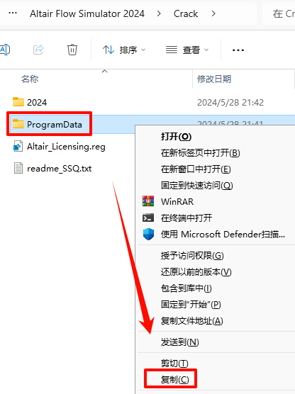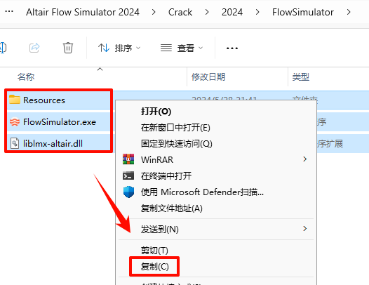 15.·µ»ØÖ®Ç°½âѹµÄ“Altair Flow Simulator 2024“Îļþ¼Ð£¬ÒÀ´Î´ò¿ª“Crack—2024—FlowSimulator”Îļþ¼Ð£¬Ñ¡ÖиÃÎļþ¼ÐϵÄÈ«²¿Îļþ£¬Êó±êÓÒ¼üÑ¡Ôñ“¸´ÖÆ”