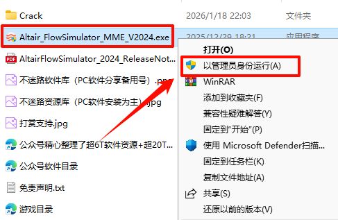 7.·µ»Ø½âѹµÄ“Altair Flow Simulator 2024“Îļþ¼Ð£¬Êó±êÓÒ¼üµã»÷“Altair_FlowSimulator_MME_V2024.exe”Ñ¡Ôñ“ÒÔ¹ÜÀíÔ±Éí·ÝÔËÐД