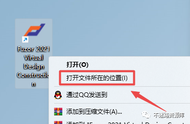 7.ÔÚ×ÀÃæÉÏÕÒµ½”Fuzor 2021“Èí¼þͼ±ê£¬Êó±êÓÒ¼üµã»÷“´ò¿ªÎļþËùÔÚλÖÔ