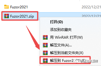 1.Ñ¡ÖÐÏÂÔØµÄѹËõ°ü£¬È»ºóÊó±êÓÒ¼üÑ¡Ôñ½âѹµ½“Fuzor2021”