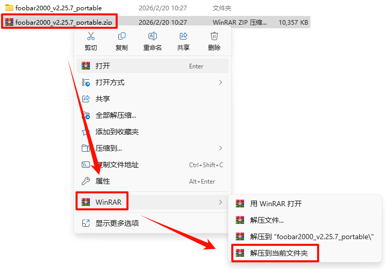 1.选中下载的压缩包,然后鼠标右键选择“解压到当前文件夹”