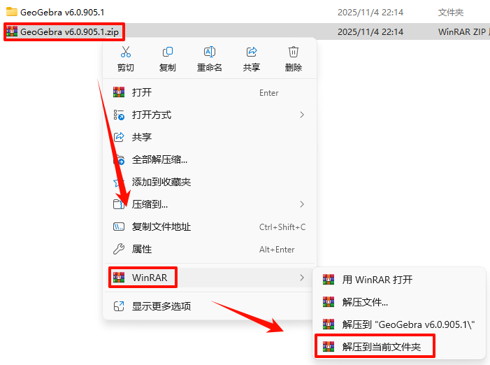 1.Ñ¡ÖÐÏÂÔØµÄѹËõ°ü£¬È»ºóÊó±êÓÒ¼üÑ¡Ôñ“½âѹµ½µ±Ç°Îļþ¼Ð”