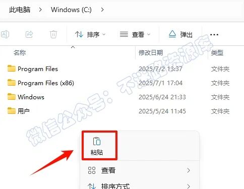 14.在打开的文件夹空白处,鼠标右键选择”粘贴”