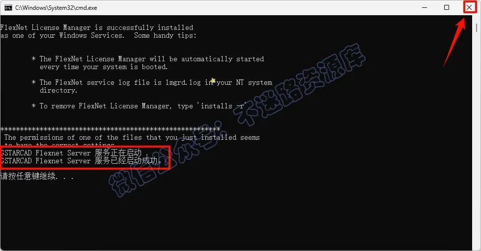 11.提示”服务已经启动成功”后,点击右上角”X”关闭界面