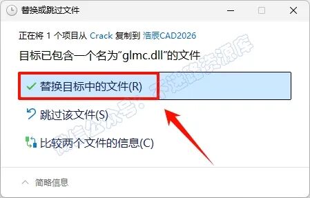 15.点击“替换目标中的文件“(若提示需要权限,勾选“为所有...”,点击“继续”)