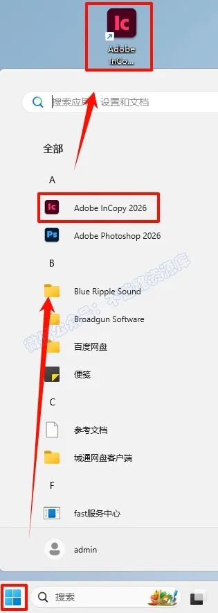 6.µã»÷“¿ªÊ¼“²Ëµ¥À¸£¬µã»÷“ËùÓÐÓ¦ÓÓ£¬ÕÒµ½“Adobe InCopy“Èí¼þ£¬Êó±ê×ó¼üÍÏ×§µ½×ÀÃæÉϼ´¿É´´½¨×ÀÃæ¿ì½Ý·½Ê½