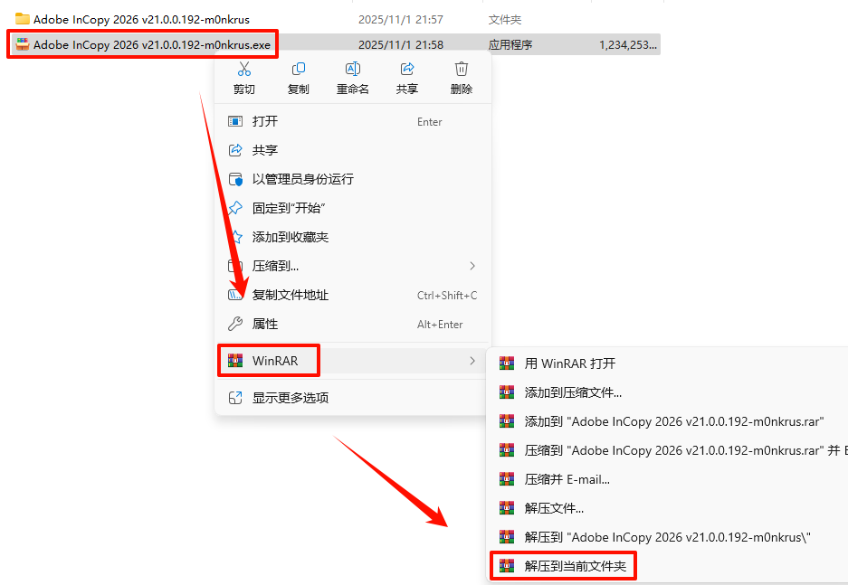 1.½øÈëÏÂÔØÁ´½ÓÏÂÔØ“Adobe InCopy 2026 v21.0.0.192-m0nkrus”°²×°°ü£¬Ñ¡ÖÐÏÂÔØµÄ°²×°°ü£¬Ñ¡ÖÐÏÂÔØµÄѹËõ°ü£¬È»ºóÊó±êÓÒ¼üÑ¡Ôñ“½âѹµ½µ±Ç°Îļþ¼Ð”