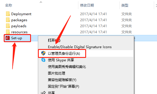 5.Êó±êÓÒ»÷¡¾setup¡¿°²×°³ÌÐò£¬Ñ¡Ôñ¡¾ÒÔ¹ÜÀíÔ±Éí·ÝÔËÐС¿¡£