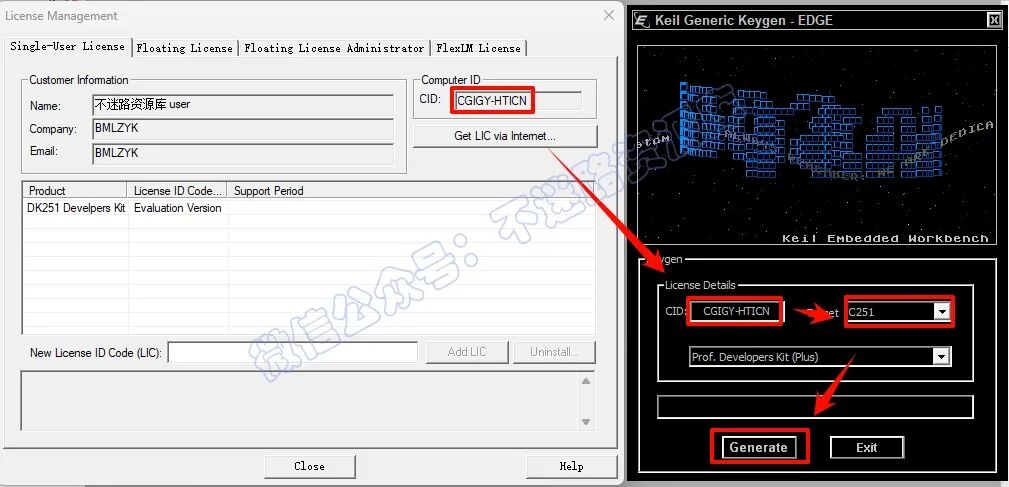 12.½«Èí¼þ½çÃæµÄ“CID”Õ³Ìùµ½×¢²á»ú“CID”µÄ¿òÖУ¬ÔÚ“Target”´¦Ñ¡Ôñ“C251”£¬µã»÷“Generate”
