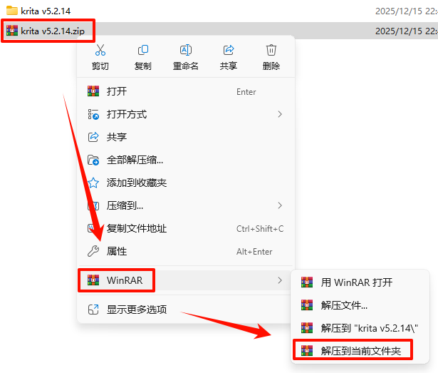 1.Ñ¡ÖÐÏÂÔØµÄѹËõ°ü£¬È»ºóÊó±êÓÒ¼üÑ¡Ôñ“½âѹµ½µ±Ç°Îļþ¼Ð”