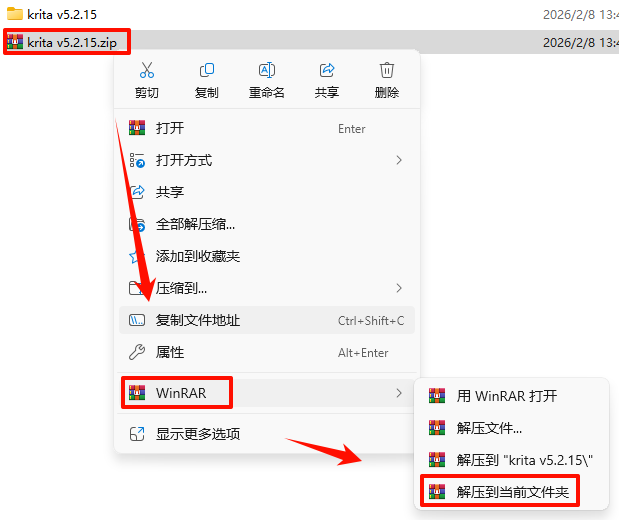1.Ñ¡ÖÐÏÂÔØµÄѹËõ°ü£¬È»ºóÊó±êÓÒ¼üÑ¡Ôñ½âѹµ½µ±Ç°Îļþ¼Ð