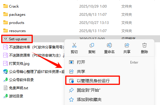2.´ò¿ª¸Õ¸Õ½âѹµÄÎļþ¼Ð£¬Êó±êÓÒ¼üµã»÷“Set-up.exe”Ñ¡Ôñ“ÒÔ¹ÜÀíÔ±Éí·ÝÔËÐД