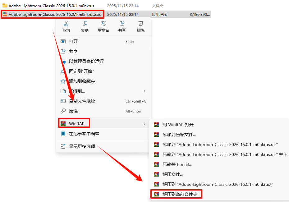 1.½øÈëÏÂÔØÁ´½ÓÏÂÔØ“Adobe-Lightroom-Classic-2026-15.0.1-m0nkrus”°²×°°ü£¬Ñ¡ÖÐÏÂÔØµÄ°²×°°ü£¬Êó±êÓÒ¼üÑ¡Ôñ“½âѹµ½µ±Ç°Îļþ¼Ð”