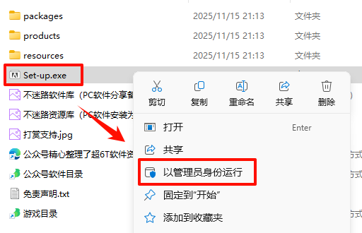 2.´ò¿ª¸Õ¸Õ½âѹµÄÎļþ¼Ð£¬Êó±êÓÒ¼üµã»÷“Set-up.exe”Ñ¡Ôñ“ÒÔ¹ÜÀíÔ±Éí·ÝÔËÐД