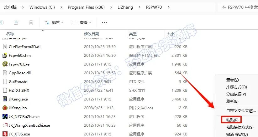 14.在打开的文件夹空白处,鼠标右键“粘贴”刚才复制的文件