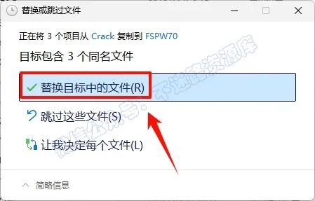 15.点击“替换目标中的文件“(若提示需要管理员权限,勾选“为所有...”,点击“继续”)