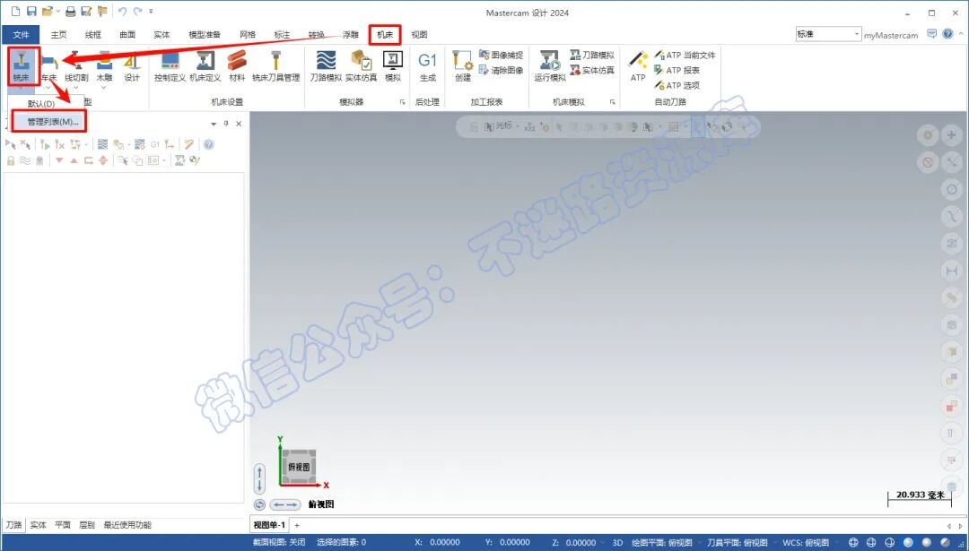 22.打开软件后,依次点击“机床——铣床——管理列表”