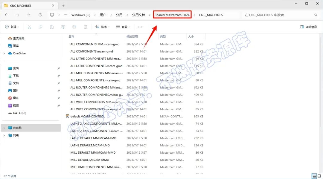27.返回打开的“Shared Mastercam 2024”文件夹,在空白处鼠标右键“粘贴”刚才复制的文件