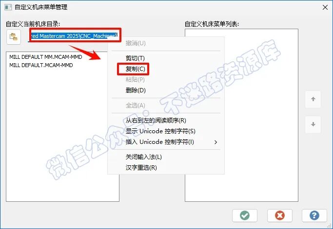 20.选中机床目录路径,鼠标右键选择“复制‘