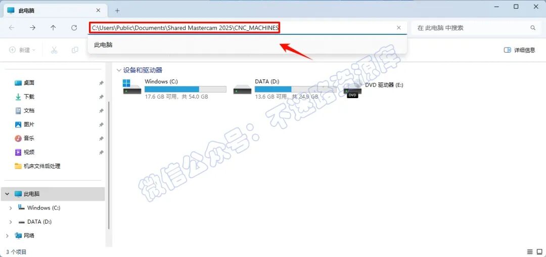21.双击桌面上的”此电脑’,在路径栏粘贴复制的机床目录路径,点击回车(Ender)键