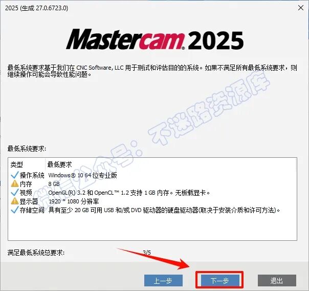 若提示最低系统要求,点击“下一步”,没有此步则跳过