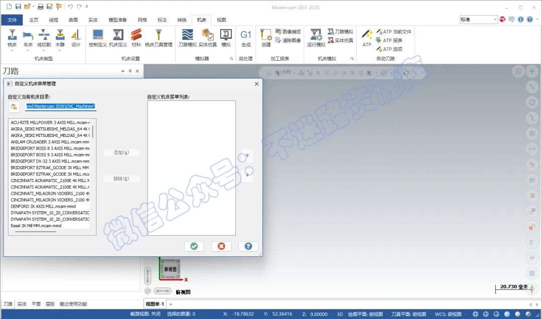 18.打开软件后,依次点击“机床——铣床——管理列表”