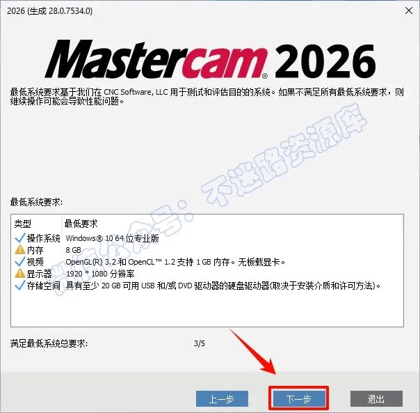 若提示最低系统要求,点击“下一步”,没有此步则跳过