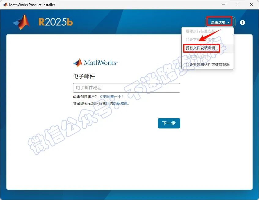 4.µã»÷ÓÒÉϽǔ¸ß¼¶Ñ¡Ï¬Ñ¡Ôñ“ÎÒÓÐÎļþ°²×°ÃÜÔ¿”