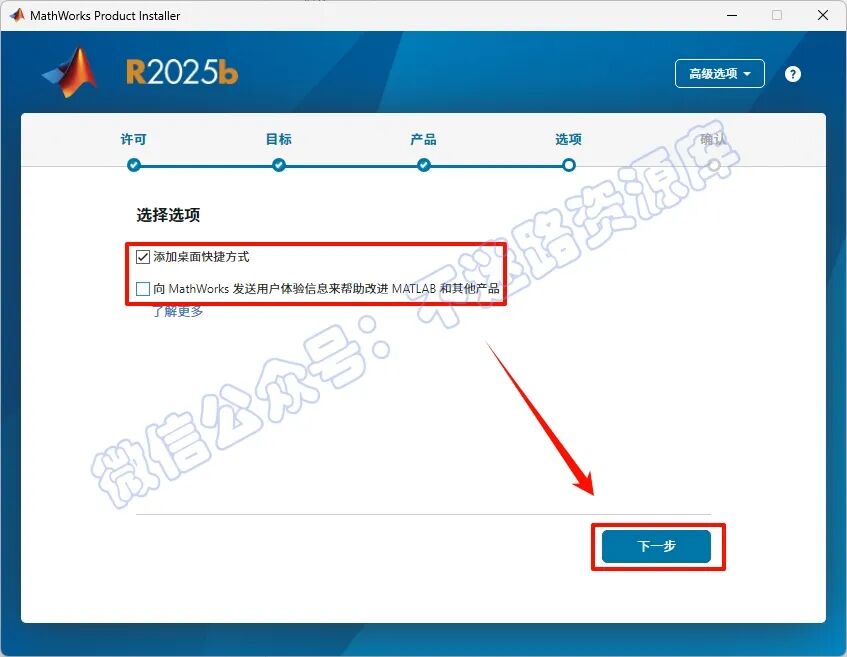 10.¹´Ñ¡“½«¿ì½Ý·½Ê½Ìí¼Óµ½×ÀÃæ”£¬È¡Ïû¹´Ñ¡“ͨ¹ýÏòMathWorks¹«Ë¾...”£¬µã»÷“ÏÂÒ»²½”