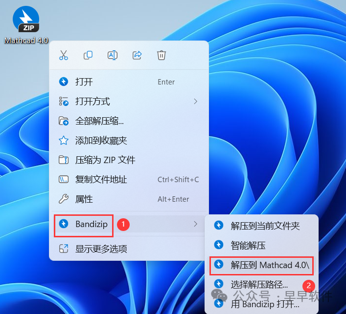 1¡¢ÏÂÔØMathcad 4.0Èí¼þ°²×°°üµ½µçÄÔÉÏ£¬ÓÒ¼üÑ¡Ôñ¡¾½âѹµ½Mathcad 4.0\¡¿